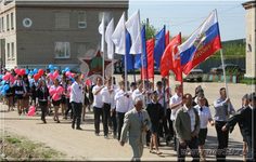 Колонна учащихся на праздновании Дня победы в Русском Камешкире | Новь